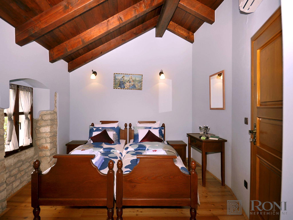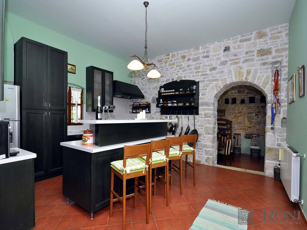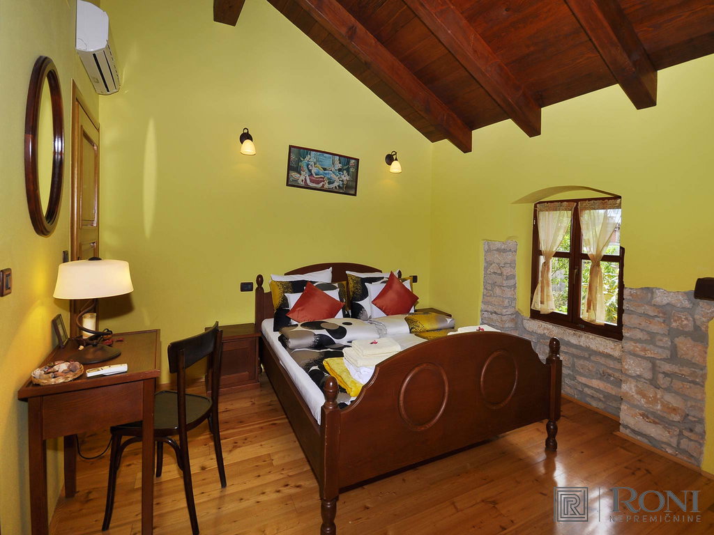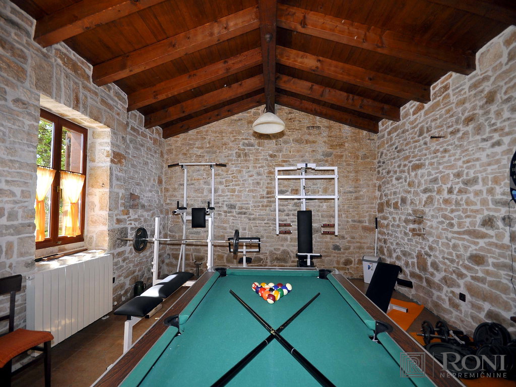 Completely renovated traditional stone villa in Istria. With its rich history, spanning over 3 centuries it is also one of the oldest renovated villas in the area. The villa is categorised as a 5-star stone villa and includes an outdoor terrace with a grill, an outdoor heated pool with automatic disinfection of water (salt water) of 55 m2, a pool house and a garden around the pool (the entire plot has is approximately 1,800 m2). The villa consists of a living room, dining room, relaxation room, playroom, utility room, 5 bedrooms and 5 and a half bathrooms. The property is ideal for the continuation of tourist/vacation rental or transformation into a luxury nursing home. The villa can be expanded to a total of about 1,200 m2. The location of the property offers peace and quiet in the heart of Istria. It is a great starting point for daily trips to most Istrian sights such as Pula, Brijuni National Park, Porec, Novigrad and also beautiful Rovinj, which is only a 20 minutes drive away.