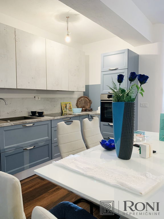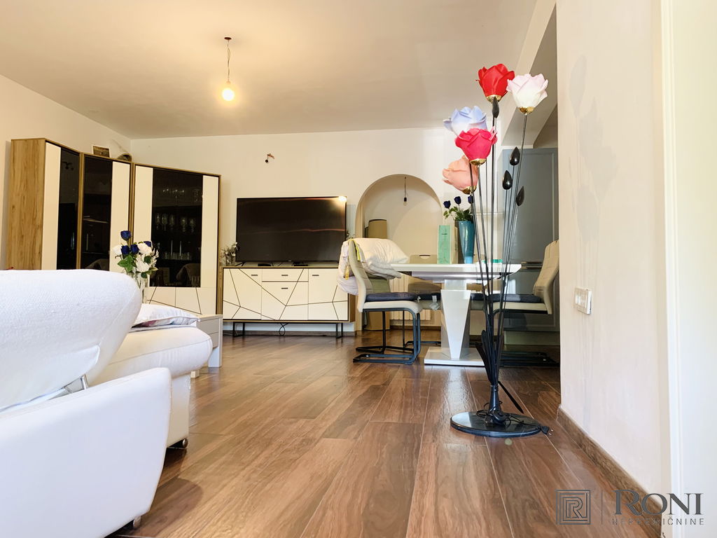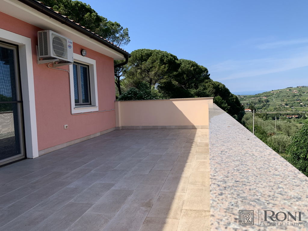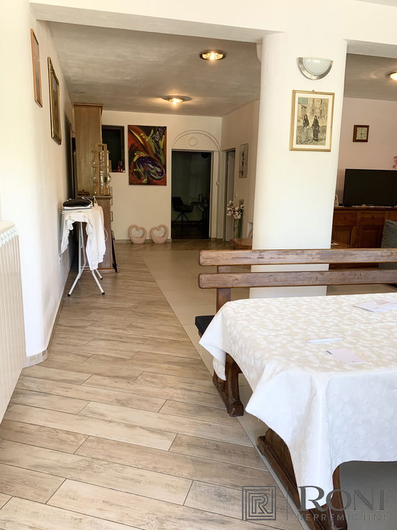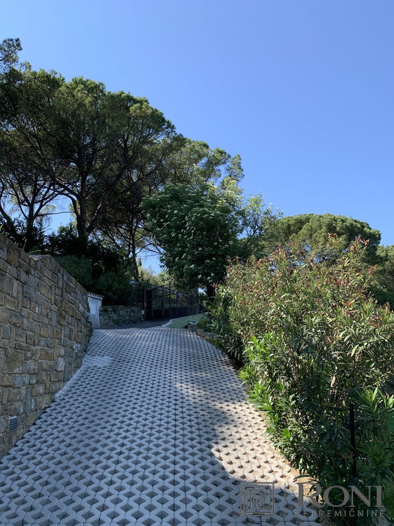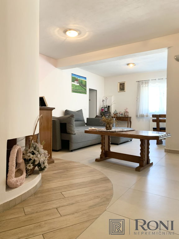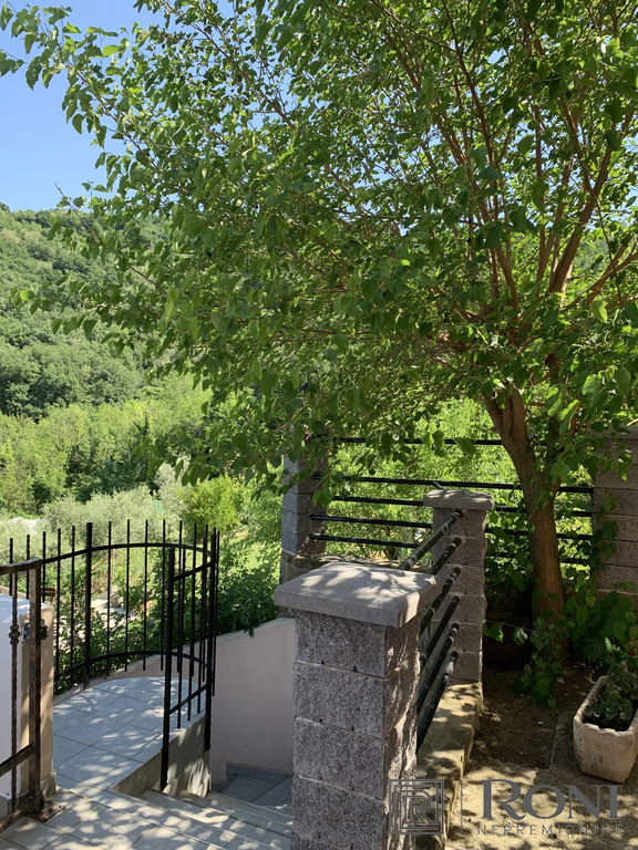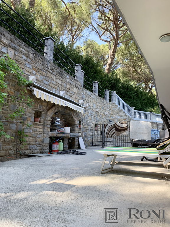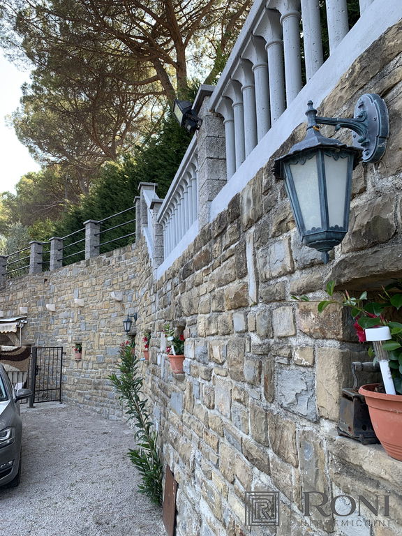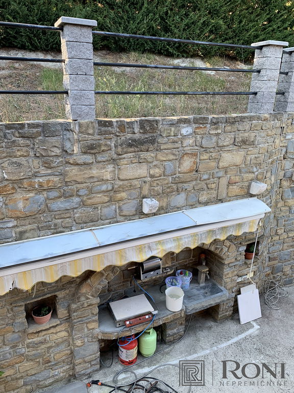 It was built in 2011 and fully completed in 2022. The total area of the house measures 492.4 m2, of which 302.2 m2 is usable area. It is built from quality materials and equipment and is equipped with high-end furniture and equipment. It stands on a plot with well-kept surroundings, access to the house is through a large metal gate (porton), which opens up a view of the entire property. There is parking for several vehicles in the yard. On the entire plot there is a large garden, two seasonal kitchens with a space for socializing, an olive grove, and there is also the possibility of building a swimming pool.