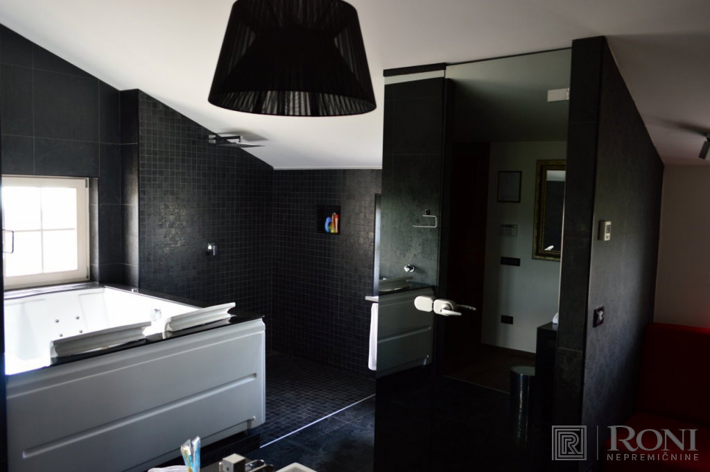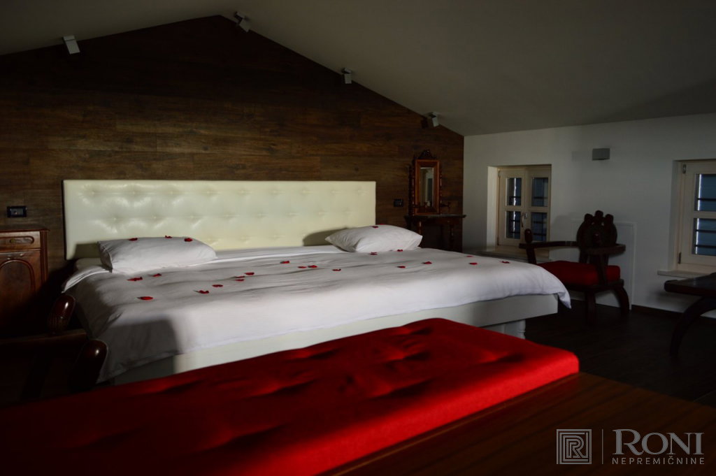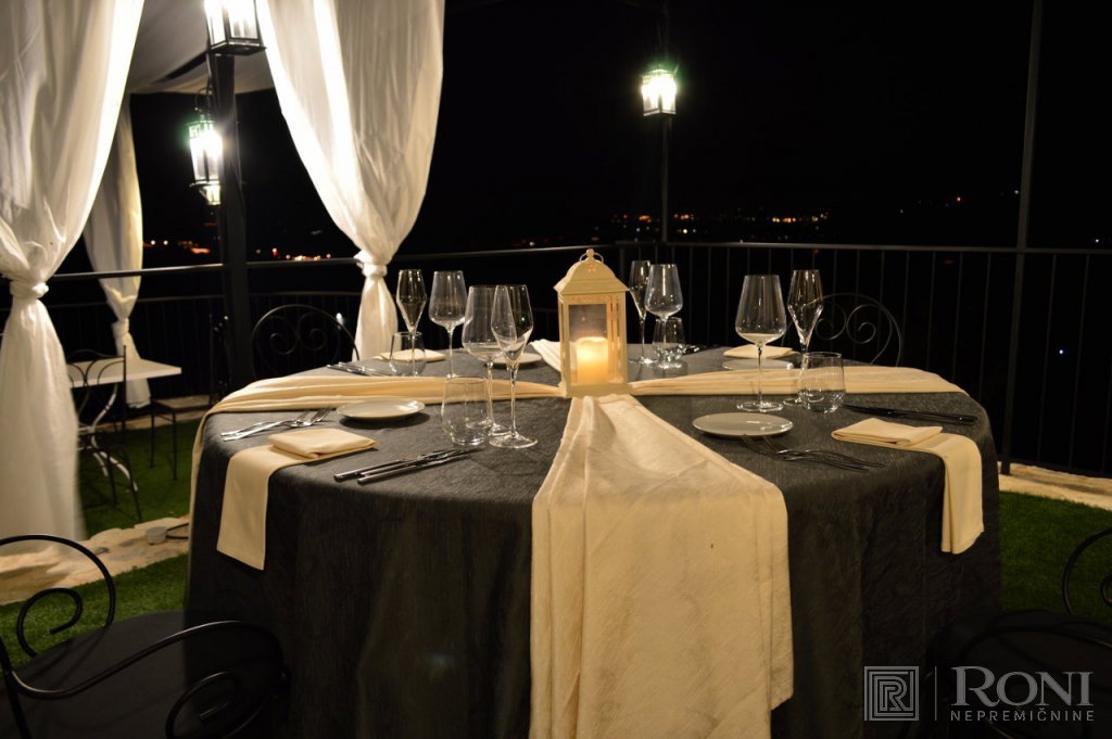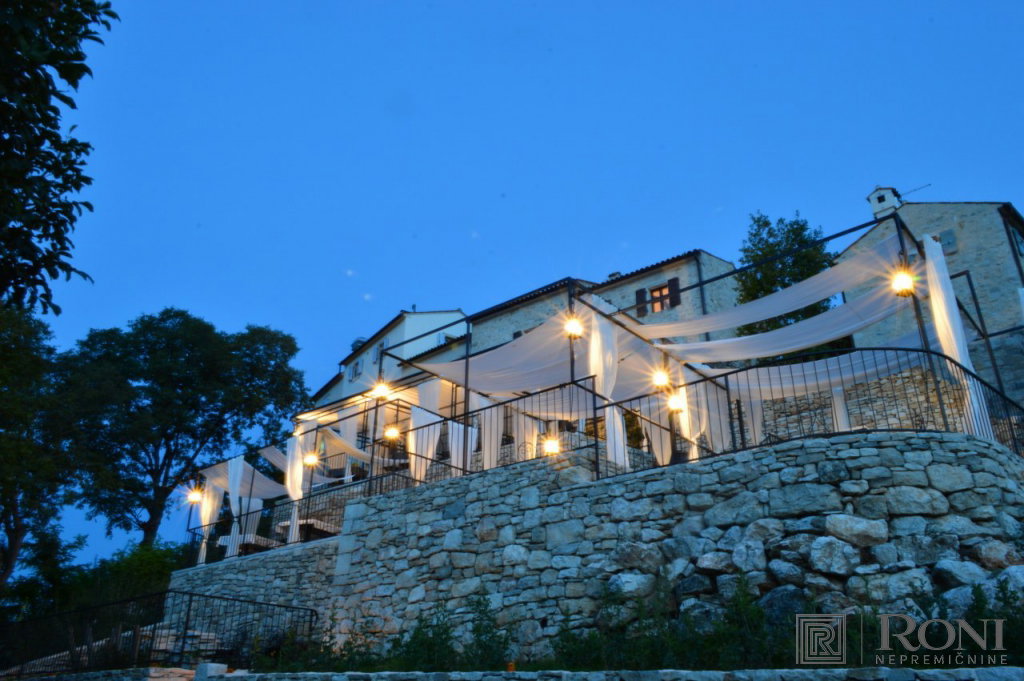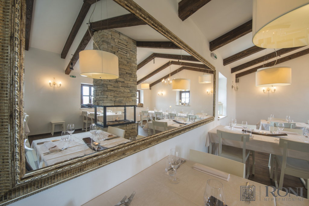 Luxurious villa in a peaceful location in the north-western part of Istria, near the border between Slovenia and Croatia and in the immediate vicinity of the Adriatic sea. At an altitude of 141 meters above the sea level, it is offering stunning views over Sečovlje salt basins and the Piran Bay. Trees surrounding the property contribute to privacy, while a perfect combination of modern design and old heritage make this villa truly unique. The villa is equipped with only high-quality equipment, materials, and furniture. The complex includes: a restaurant, guestrooms, a swimming pool and levelled terraces with a delightful sea view.