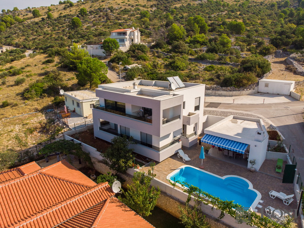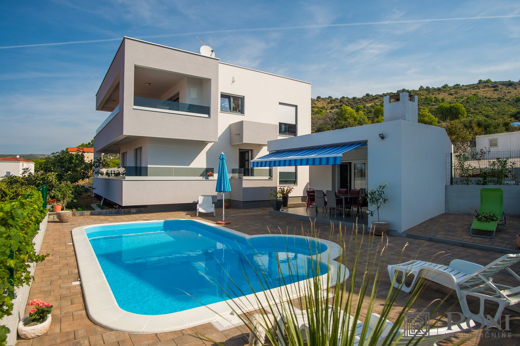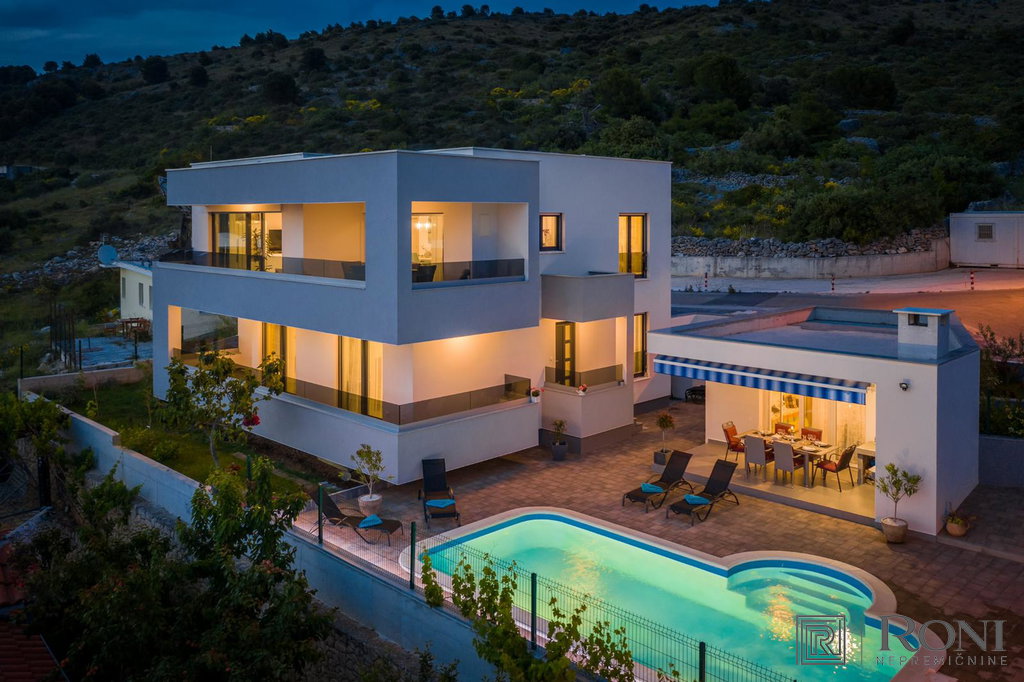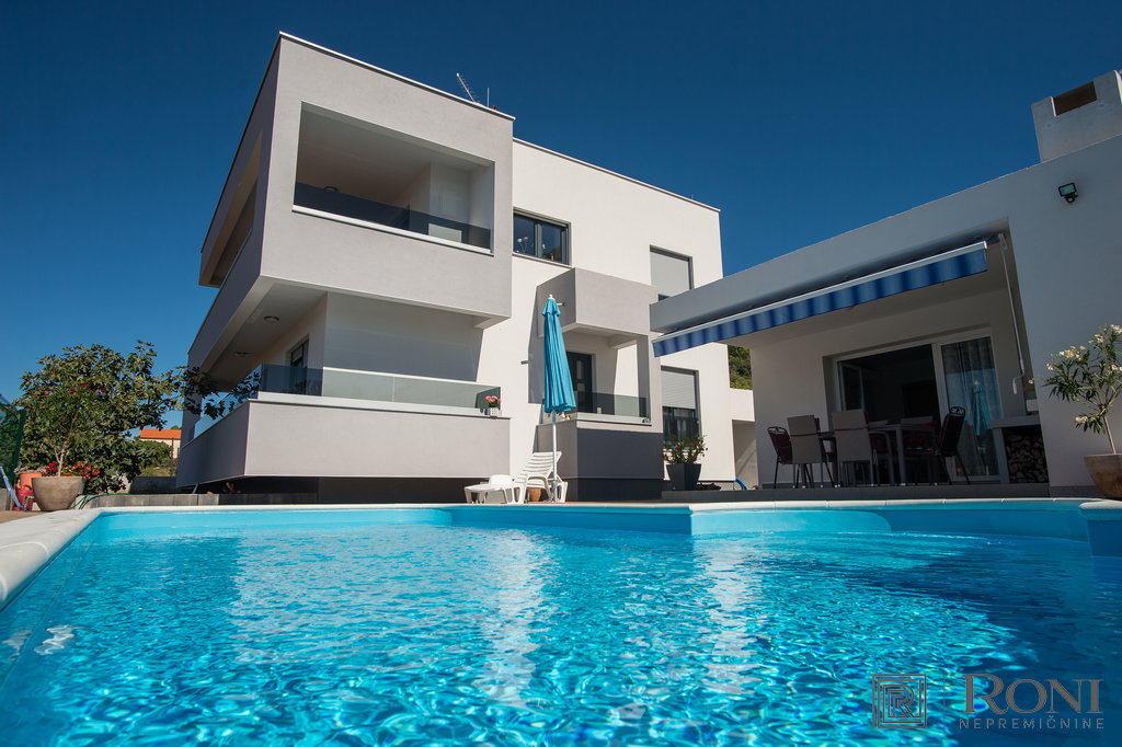 Basic information about the property: Luxury modern villa is located in Rogoznica, only 80m from the sea! The house can be used for vacation or for tourism. It has 5 rooms, a wonderful sea view, a private swimming pool and a large parking lot. Distance from the beach is only 80 m.