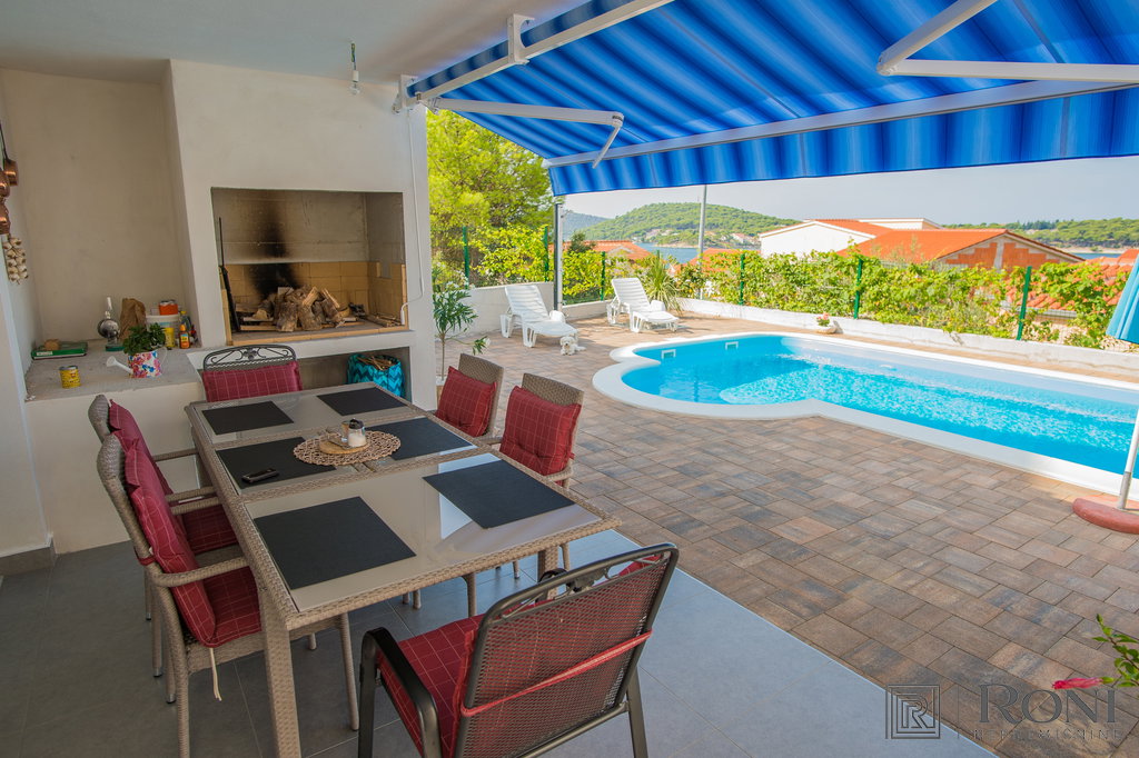 Additional information about the property: This villa is an interesting combination of modern and traditional style, and the complete picture creates the yard with a large pool and sunbathing area, a garden, and a parking space for more (5-6) cars.