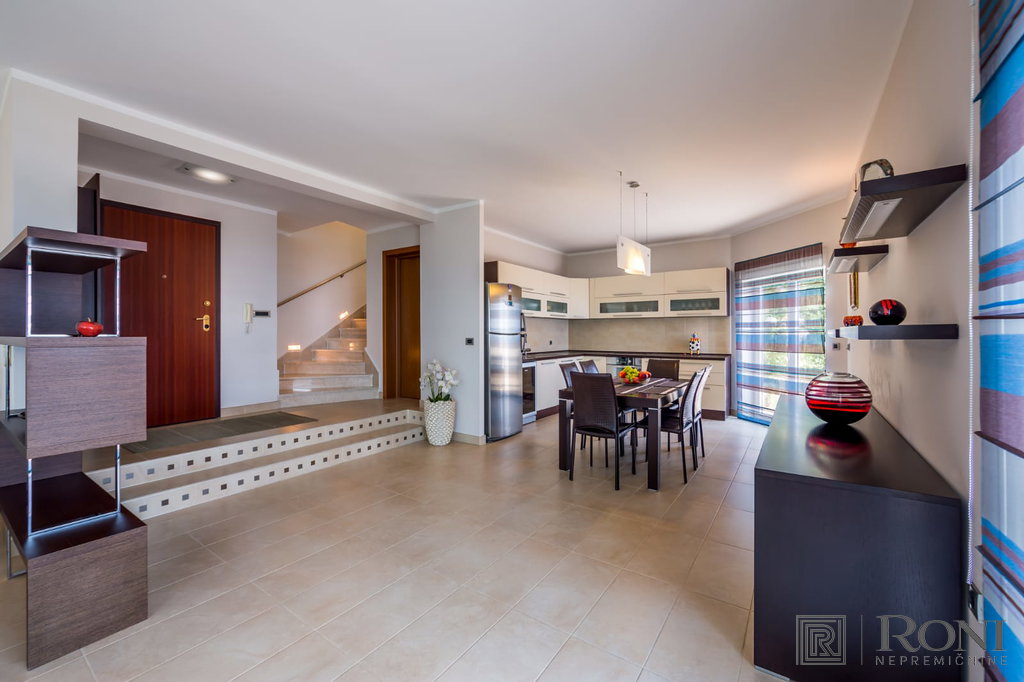 Basic information about the property: Completely renovated house in Opatija in the size of 200m2 gross - 165m2 of living space and 35m2 of terrace. All rooms are air conditioned, underfloor heating around the house. The floors on the first floor are ceramic and the second floor is lacquered. Southeast location, all rooms have a view of Kvarner.